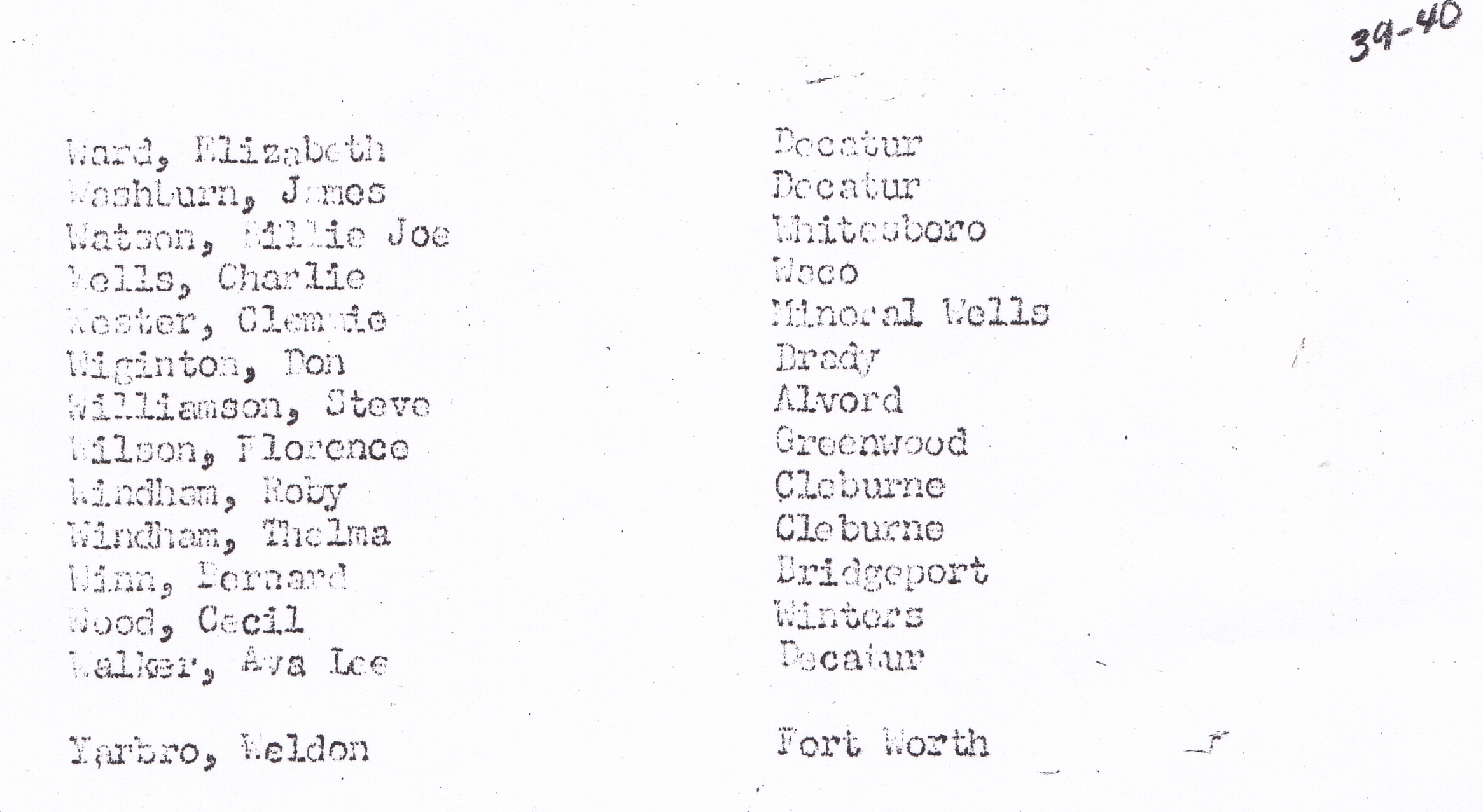 Museum = Picture or Paper on File at the Wise County Heritage Museum)